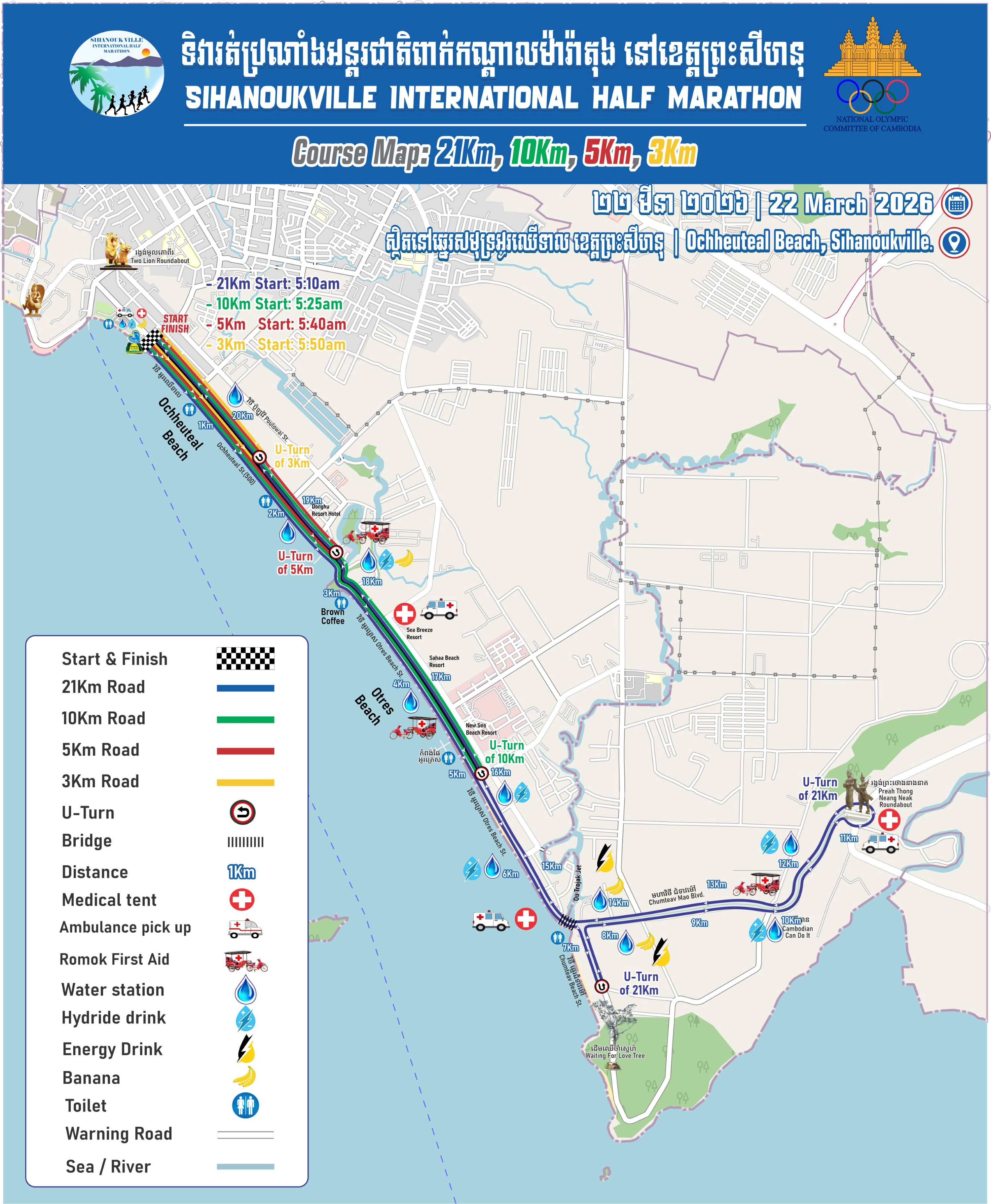 Your great consciousness and participation to the 11th of Sihanoukville International Half Marathon on 22 March 2026 should be very grateful and warmly welcomed in the Kingdom of Cambodia.